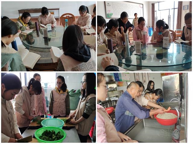 第二期启蒙班志愿服务地点由去年雨花斋一店调整为雨花斋二店,除了基础设施更加优越之外,更大的服务空间和更浓厚的文化氛围为学员们开展志愿服务,学习传统文化提供了便捷条件。一来到雨花斋,学员们便换上了工作服,在工作人员的指导下开始了紧锣密鼓的工作。一部分学员去后厨帮忙切菜、淘米,积极完成工作人员分配的任务;另一部分学员则端坐在桌子前阅读与感恩有关的书籍,与这里的志愿老人畅聊雨花精神。