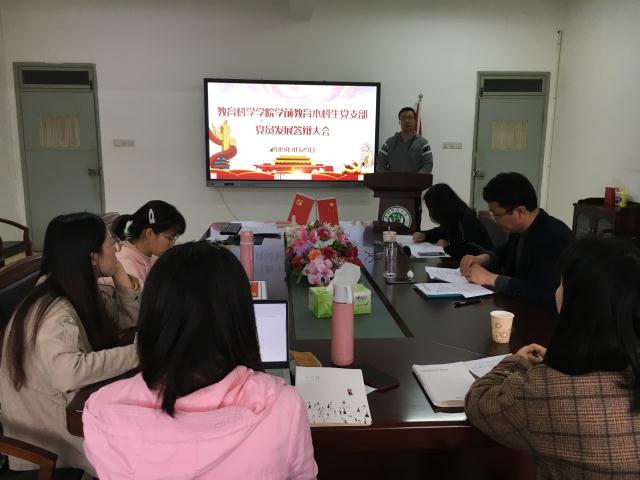 本网讯(教科院 黄文静)为进一步规范党员发展流程,提升党员发展质量,本着“成熟一个发展一个”的原则, 4月29日中午12:30,学前教育本科生党支部在公司308会议室召开了党员发展答辩大会。公司党委副书记张如华、副经理张更立、支部书记龚伟、2016级辅导员艾瑞雪组成答辩委员会,对答辩者进行了现场考察,支部党员、17和18级的入党积极分子以及部分启蒙班的同学参与了现场评议工作。会议由支部书记龚伟主持。