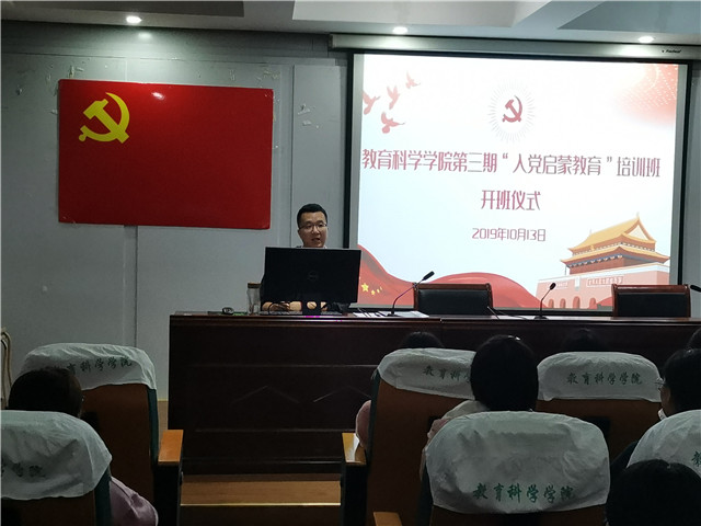 本网讯(教科院 詹洁)十月金秋送爽,教科院“入党启蒙教育”培训班迎来了新一批00后。10月13日晚第三期“入党启蒙教育”的第一次活动在公司学术交流中心顺利举行。学前教育本科生党支部书记龚伟老师、全体驻班党员以及2019级启蒙班成员参与了此次活动,活动由龚伟老师主持。