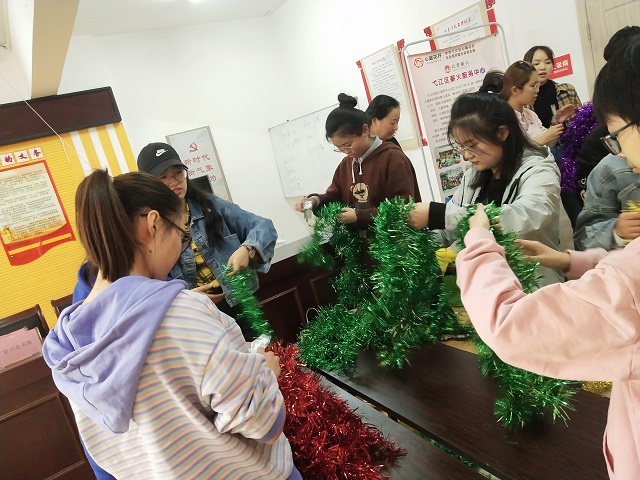 10月31日晚,18级组长卢皓玮与小组成员一同前往儒林西苑社区,志愿帮助社区开展亲子趣味活动,以饱满的热情投入到晚会的现场布置中。学员们分工明确、配合默契,高效率完成搬桌子、贴装饰、打气球等任务,并在活动过程中主动维持现场秩序,带动现场氛围,以实际行动传播助人为乐、甘于奉献的精神,在活动过程中充分发挥先锋模范作用。