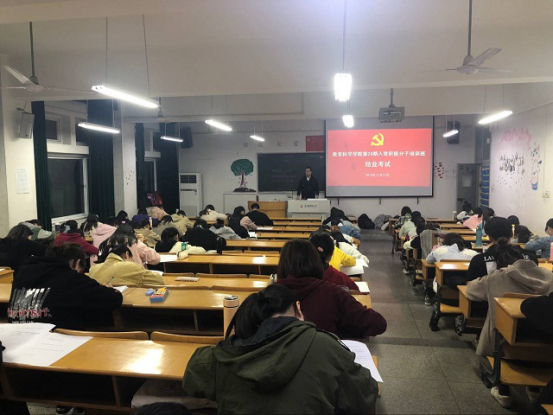 为把好党员发展“入口关”,确保党课培训成果,检测入党积极分子的学习成效,11月13日晚7点,教科院第29期入党积极分子培训班65位学员于8410教室参加入党积极分子培训班结业考试,由培训班班主任龚伟老师、副班主任谭茹轩老师进行监考。全场考试采取闭卷限时的形式,根据培训内容,结合时事政治,以党章为依据,辅以十九大报告等内容考察。学员们认真作答,态度端正,考场秩序井然,充分展现出公司学子严于律己的优良作风。