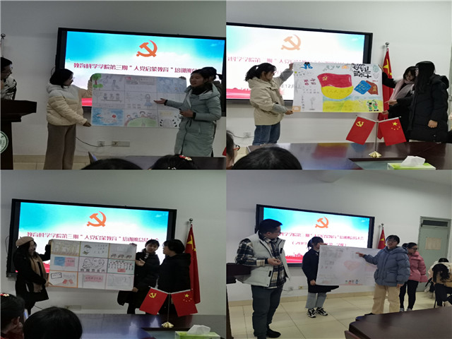 颁发仪式结束后,启蒙班10个小组成员依次用九宫格绘画作品展示了一学期的所思所得。同学们结合“最熟悉的陌生人——马克思”“合群与不合群”“雨花之行”等内容介绍了本学期参与的理论学习与实践活动,并结合绘画作品“师大之缘”“军训之苦”“启蒙之星”等内容回顾了老员工活,分享了自己的成长心路。随后,17级驻班党员陈燕萍和李月两位同学分别就第一学期工作和第二学期规划进行了总结布置。