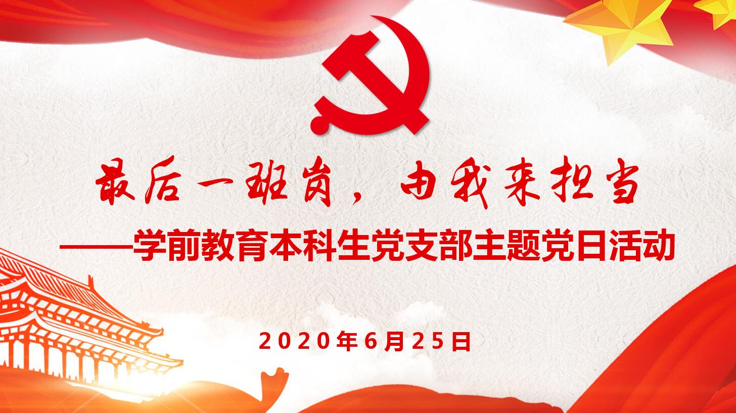 本网讯(教科院 李月 龚伟)为加强毕业生党员教育管理,切实做好毕业生党员文明离校和组织关系转移工作,2020年6月3日至7月3日期间, 学前教育本科生党支部根据公司春季学期员工返校和校园疫情防控要求,精心组织策划了“四个一”活动,旨在使广大毕业生党员进一步强化党员意识,增强组织观念和纪律观念,充分发挥其在学习、工作、就业和离校中的先锋表率作用。