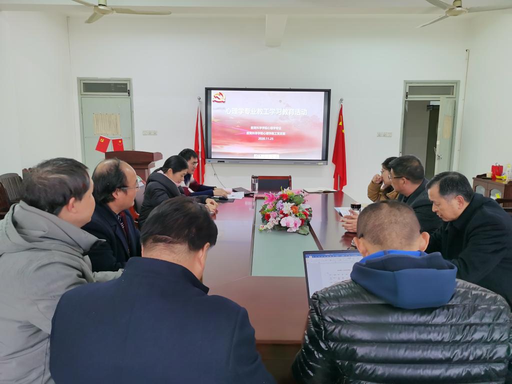 本网讯(心理学教工党支部)2020年11月25日下午,心理学教工党支部在308会议室举行了全体专业教师的学习教育活动,活动由教工党支部书记韩建涛主持。