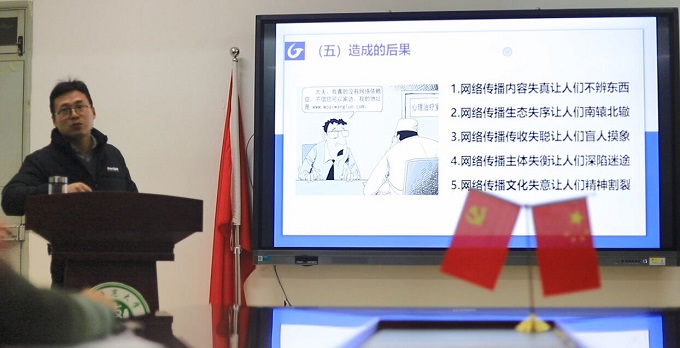 本网讯(教科院 刘玉洁)12月3日19:00,教科院“入党启蒙教育”培训班于公司308会议室如期开班,特邀新闻与传播公司马星宇老师开展《做新时代网络正能量的传播者》为题的理论授课,龚伟老师、驻班党员以及启蒙班学员认真听取了课程。