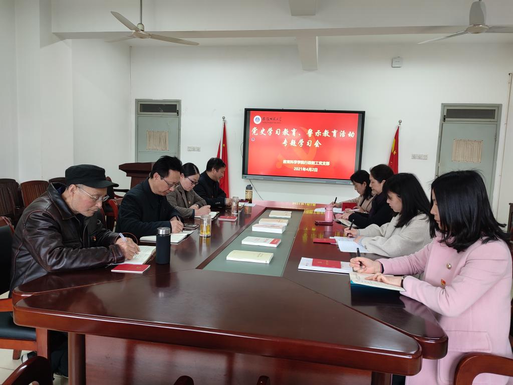 会上,卞纲要介绍了此次政治学习活动的主要议程和安排,并带领大家学习了《中国共产党章程》的部分内容。公司党委秘书袁黎平领学了公司根据党中央、省委和公司党委关于开展党史学习教育的统一部署,结合公司实际制定的《公司党史学习教育实施方案》,进一步明确了公司党史学习教育实施方案的指导思想、目标要求、学习内容、学习教育安排、工作要求。组织委员孟庆娟领学了校组织部、校纪委编写《鉴戒》中的“身边案例”内容,以案示警、以案为戒、以案促改,通过警示教育警示教工党员要时刻牢记党的纪律,做到廉洁自律,时刻筑牢思想道德防线。全体党员围绕行政支部如何有效开展党史学习教育、如何解决师生中存在的一些具体困难等进行了热烈地讨论与交流。