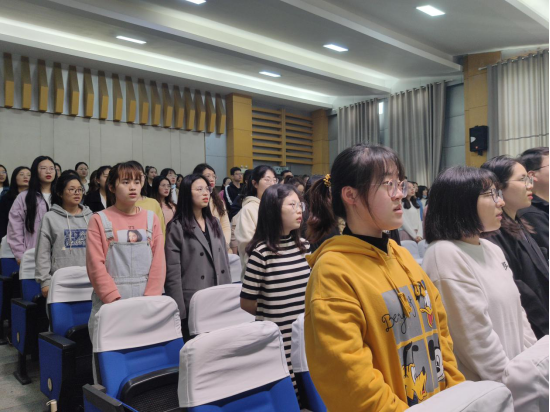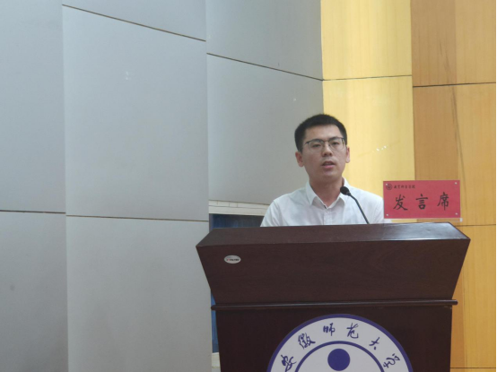 结业典礼在庄严的国歌声中拉开序幕,副班主任蔡文介绍了本次结业典礼的议程,入党积极分子培训班班长2018级学前教育专业戴国强同学和党员培训班宣传委员2019级现代教育技术学中美专业研究生段悦鑫同学分别总结了本期培训班的教学与实践开展情况。