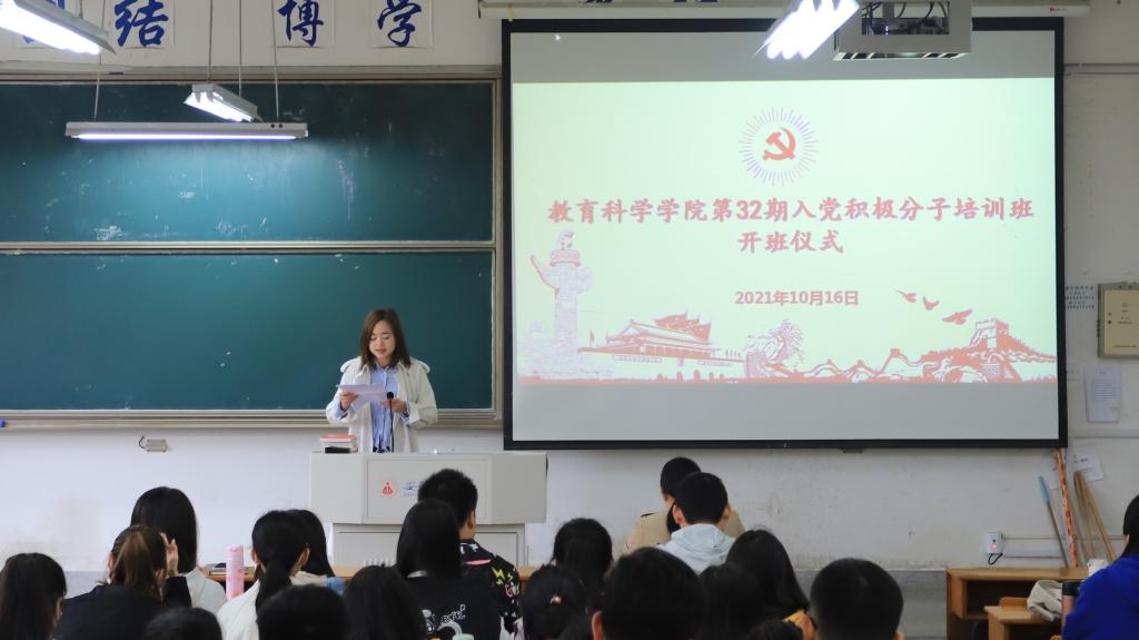 开班典礼在庄严肃穆的国歌中拉开帷幕,全体与会人员起立奏唱国歌。蔡文首先宣读了公司党委关于本期入党积极分子培训班通知文件,就培训班教学及管理工作进行通知。本期党校培训班班长、2019级小学教育专业的江宇璇同学代表全体培训班成员发言。江宇璇表示,作为一名入党积极分子不仅要学习党的光辉历史,更要汲取背后蕴藏的智慧和精神,她还从自律、自省、自励三方面鼓励大家在实现中国梦的生动实践中放飞青春梦想!
