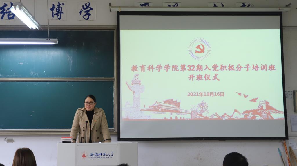 典礼结束后,杜凤为本期培训班成员上了第一节课——《思想入党和组织入党》。从视频“没有共产党就没有新中国”的歌声中引出问题“什么是共产党?”,杜凤从认识中国共产党、端正入党动机、入党流程等方面进行介绍,告诉同学们作为一名入党积极分子必须要端正自己的入党动机。“组织入党一生一次,思想入党一生一世”,她希望同学们坚定理想信念、加强理论学习、充分发挥作用、从身边点滴做起做好表率,以实际行动争取早日入党!