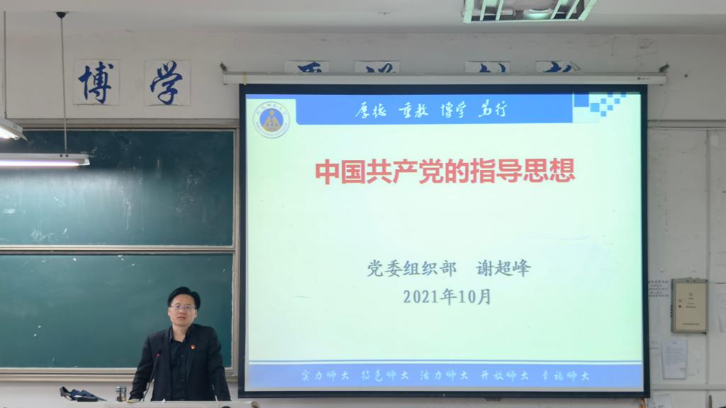 谢超峰首先指出“指导思想是一个政党的精神旗帜”,带领学员们明确了指导思想对于一个政党的重要性。从中国共产党的指导思想以及如何学习、践行坚持党的指导思想等方面向入党积极分子们讲述了一堂生动的党课。杜凤从端正入党动机、明晰入党流程进行解读,帮助学员们在行动上、思想上积极向党组织靠拢。