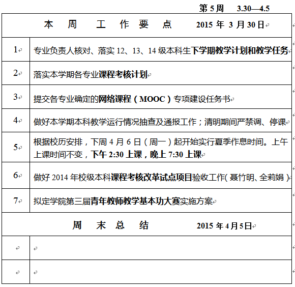 TapTap点点2014-2015学年第二学期教学工作第5周周报表