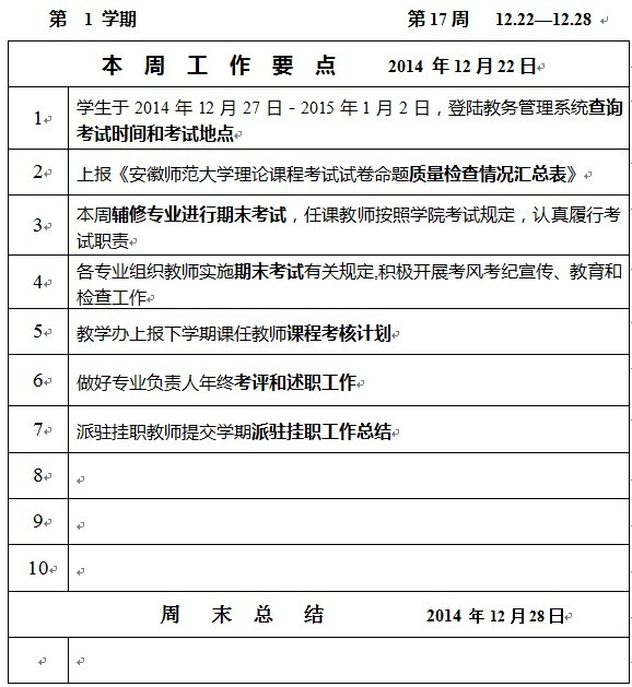TapTap点点2014-2015学年第一学期教学工作第17周周报表