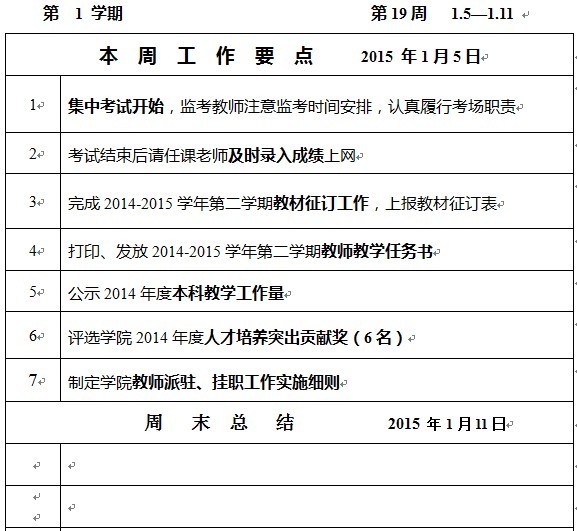 TapTap点点2014-2015学年第一学期教学工作第19周周报表
