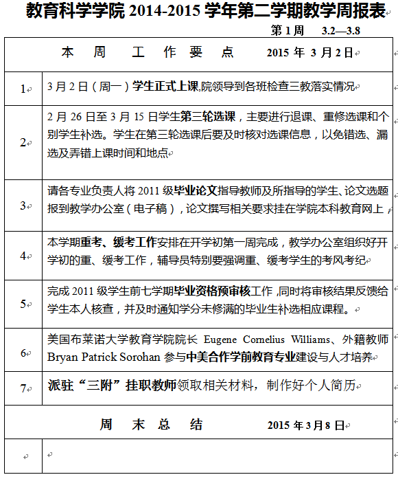TapTap点点2014-2015学年第二学期教学工作第1周周报表
