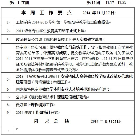 TapTap点点2014-2015学年第一学期教学工作第12周周报表