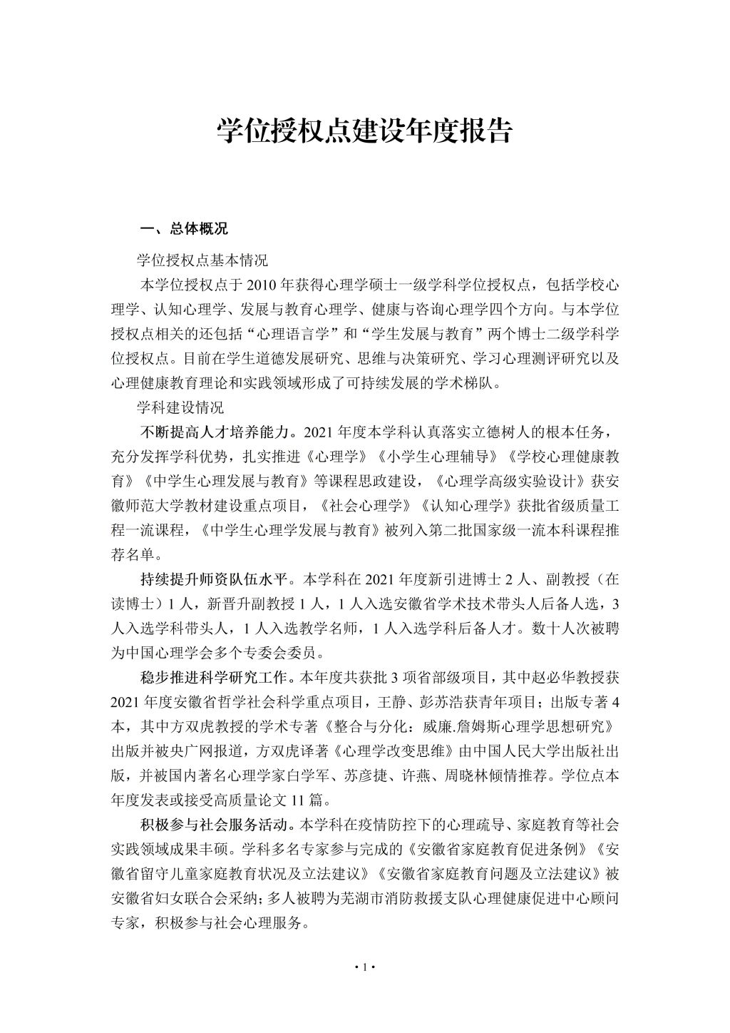 心理学-学位授权点建设年度报告